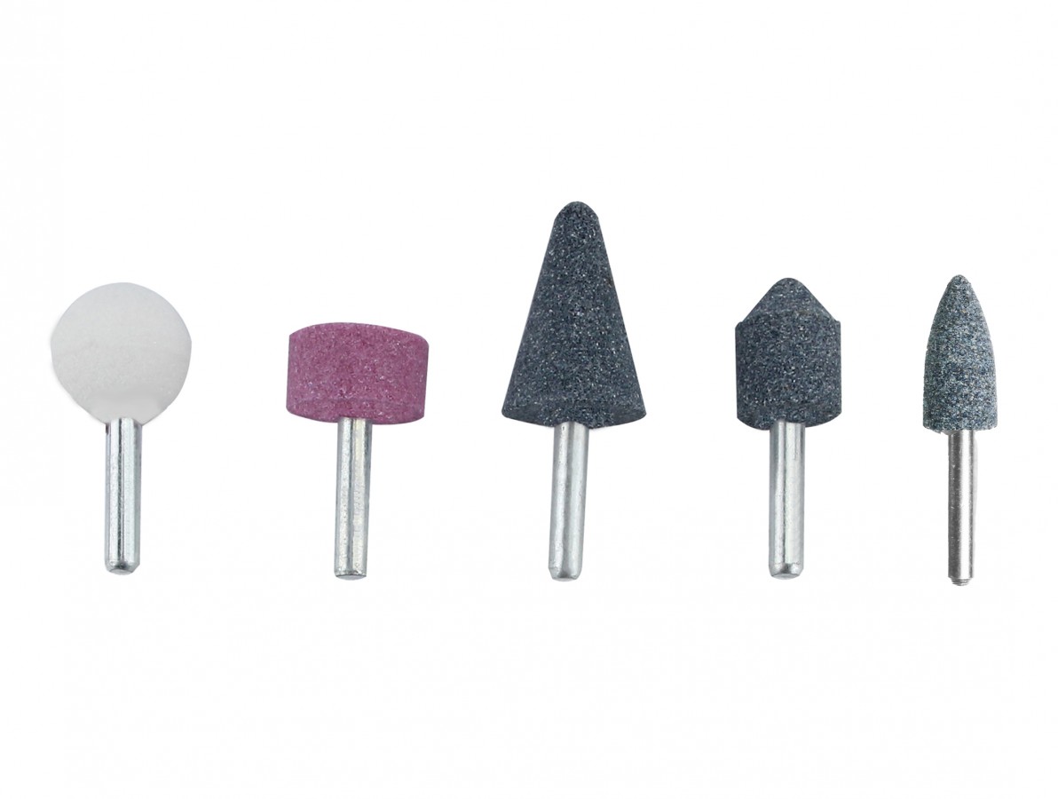 O Kit Ponta Montada com 5 Pedras de Desbaste Eixo 1/4 possui uma variedade de 5 diferentes peças que podem ser utilizadas tanto para trabalhos eletrônicos quanto para trabalhos artesanais. Com elas o operador poderá, dentre outras funções, afiar, desbastar, lustrar, limpar, polir ou esmerilhar.