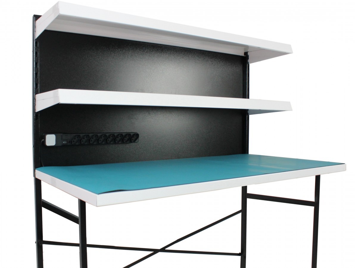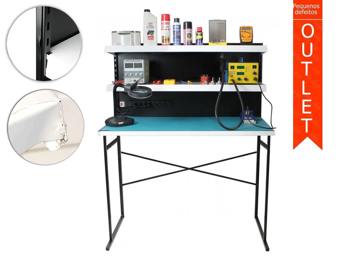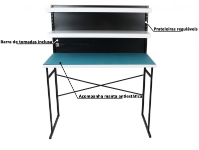 O desenvolvimento de atividades técnicas e profissionais da área eletrônica depende muito de uma completa e segura bancada de trabalho, sendo que esta versão apresenta como principal diferença a presença de uma barra de tomadas com proteção por fusível e chave on/off, que permite ligar até 8 equipamentos, possibilitando ser fixada no local que melhor se adapte ao profissional.