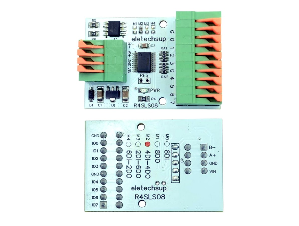 O Módulo RS485 Modbus RTU 4 Entradas e 4 Saídas Digitais 12–24V – R4SLS08 4DI + 4DO é um módulo de entradas e saídas digitais com comunicação Modbus RTU, desenvolvido para aplicações em automação industrial, sistemas de controle e monitoramento.