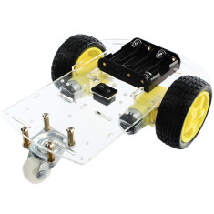 Entre os conjuntos disponíveis nos Kits Robótica estão os chassis de carrinhos robóticos possuindo versões com estrutura em MDF, algumas em acrílico preto ou transparente, além de modelos mais completos com liga de plástico ABS, todos seguindo um excelente padrão de acabamento para o projeto final.