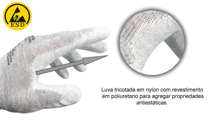 - Luva ESD Antiestática e Antiderrapante Branca G;
