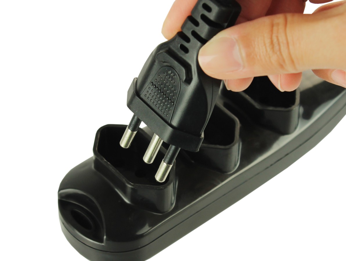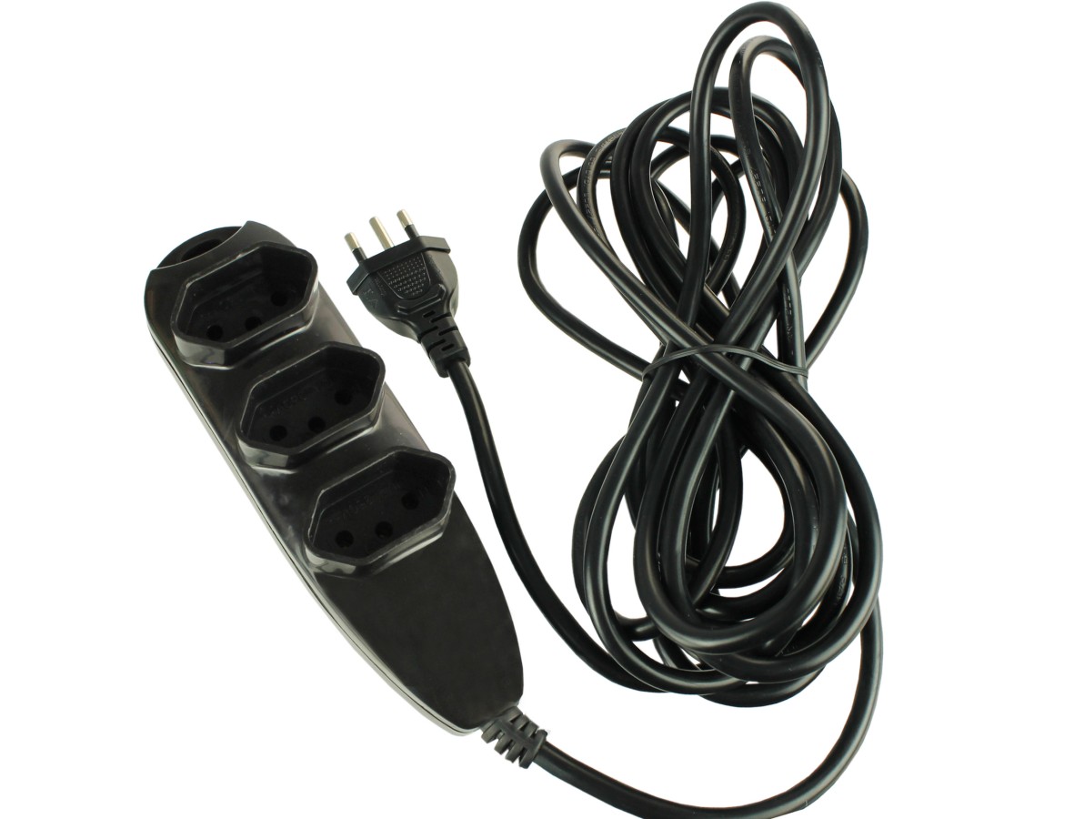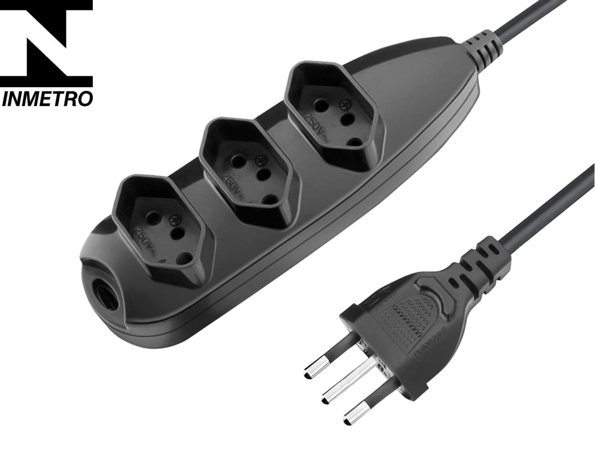 - Visando melhorar ainda mais a experiência de uso junto a Extensão de Energia, a mesma apresenta em sua extremidade um conjunto de tomadas com 3 tomadas tripolares de acordo com o padrão brasileiro NBR 14136.
