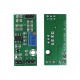Basta utilizar o seu trimpot e verificar a tensão de referência entre o Ground (negativo) e o ponto de teste "C" na placa, esta será a tensão de acionamento do módulo. Quando a entrada "IN" ficar acima da tensão em "C", será ativado a saída digital "D" e a saída OUT.