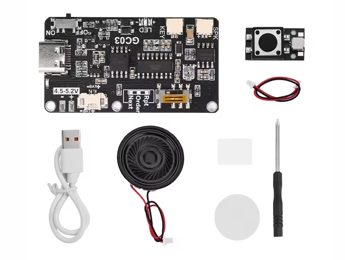 Compatível com arquivos MP3 e WAV, o módulo possibilita a transferência direta dos áudios via conexão USB-C, funcionando como um dispositivo de armazenamento quando conectado ao computador. Para o funcionamento correto do módulo, a chave liga/desliga deve estar na posição “ON”. Seu uso é ideal para caixas sonoras DIY, projetos interativos, protótipos educacionais, brindes personalizados, efeitos sonoros e aplicações embarcadas.