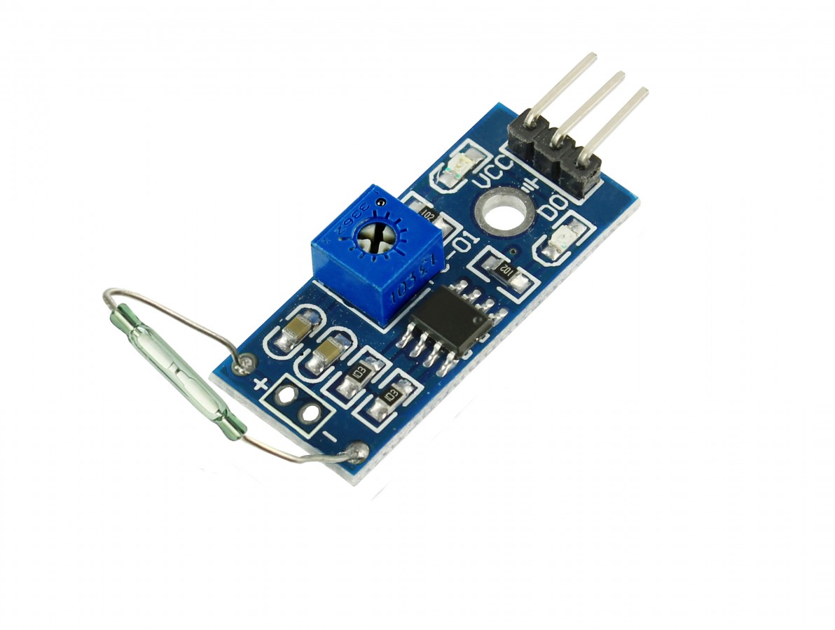 Internamente, o sensor é composto por contatos metálicos encapsulados em um invólucro resistente, que se aproximam ou se afastam conforme a presença de um campo magnético. Dessa forma, ao aproximar um ímã do sensor, o circuito interno é acionado, alterando o estado do sinal elétrico enviado ao microcontrolador.