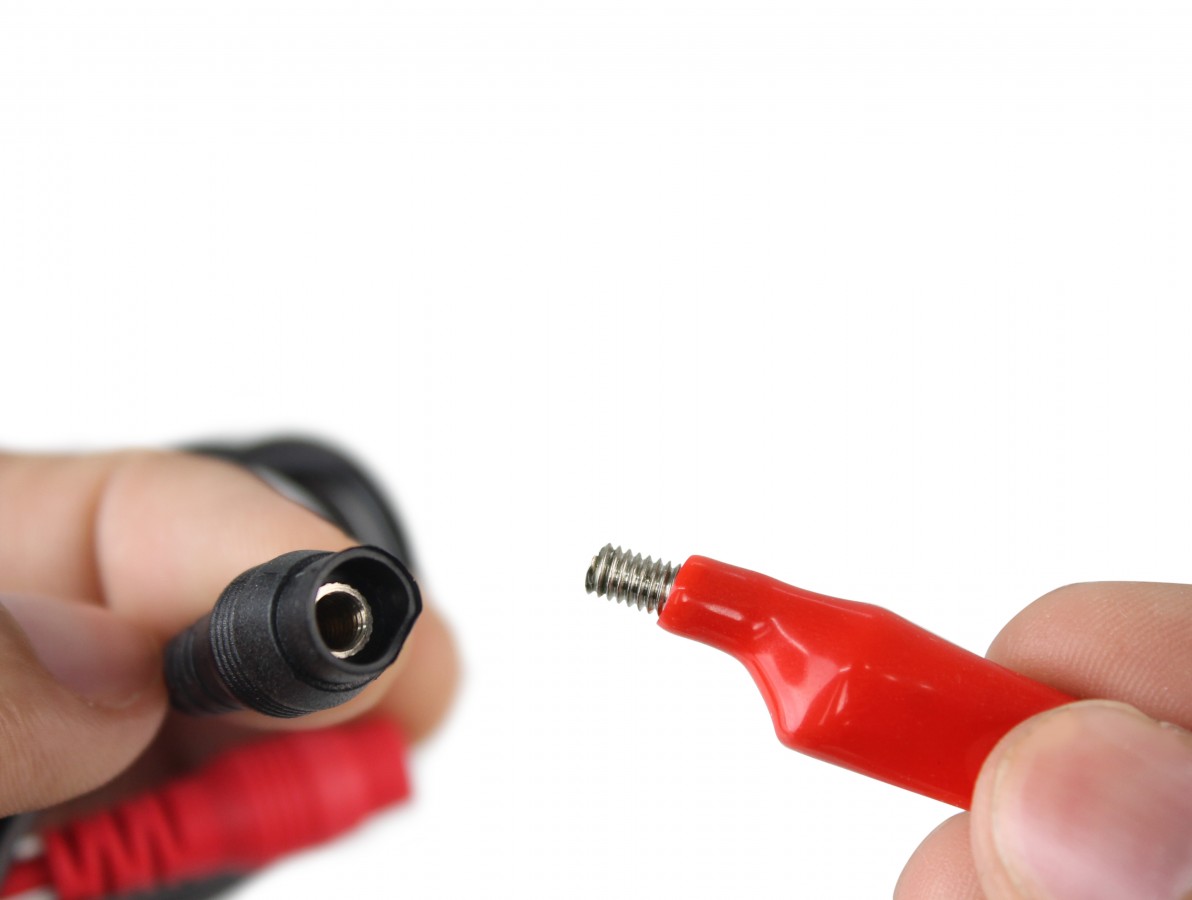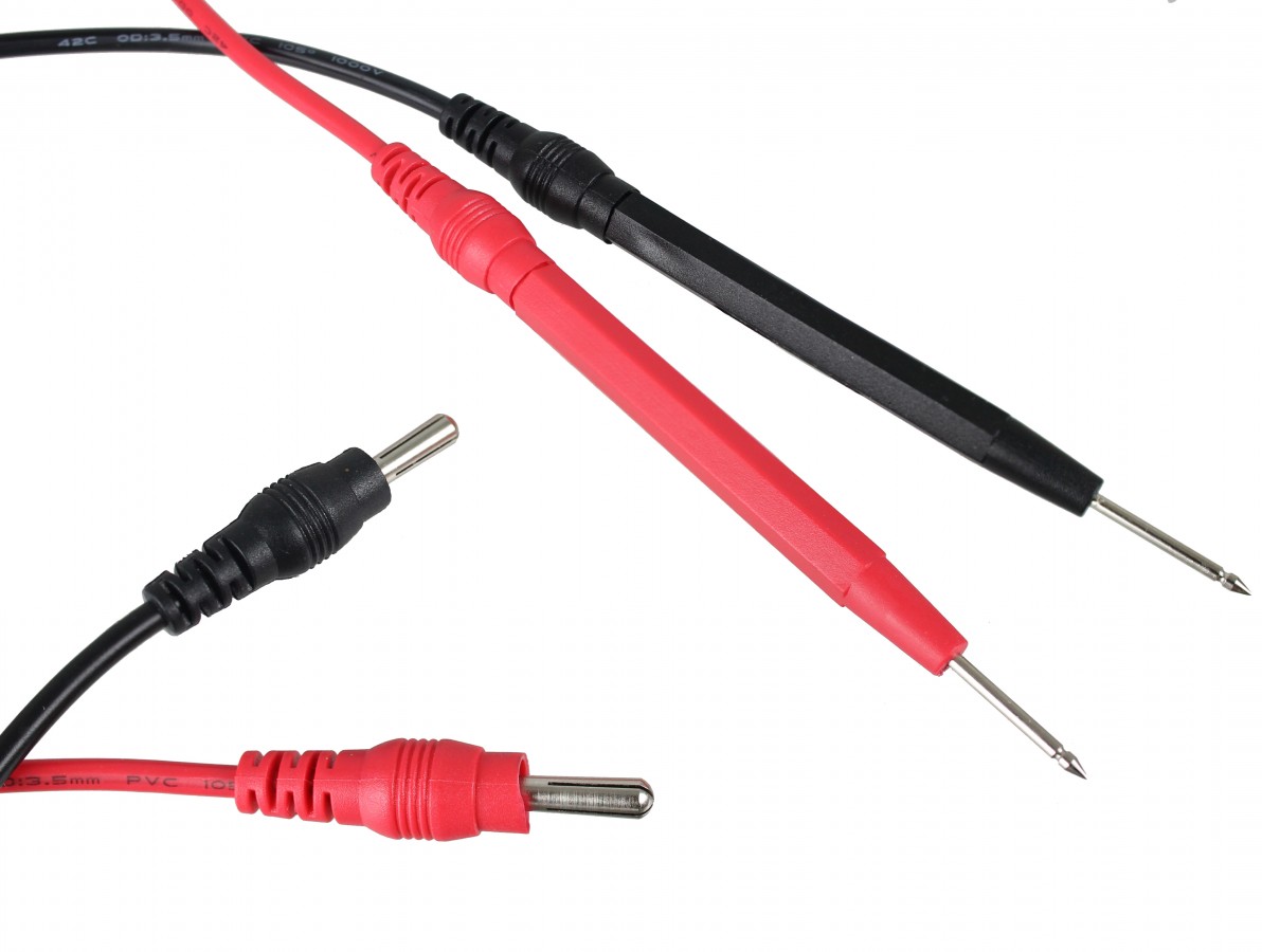 Também conhecida por ponteira ou cabo para multímetro, está de acordo com as normas e cores padrão de segurança: vermelho (+) e preto (-). Possui terminal de conexão tipo banana de 4mm com angulação de 180°, podendo ser utilizado na maioria dos equipamentos de teste e medição.