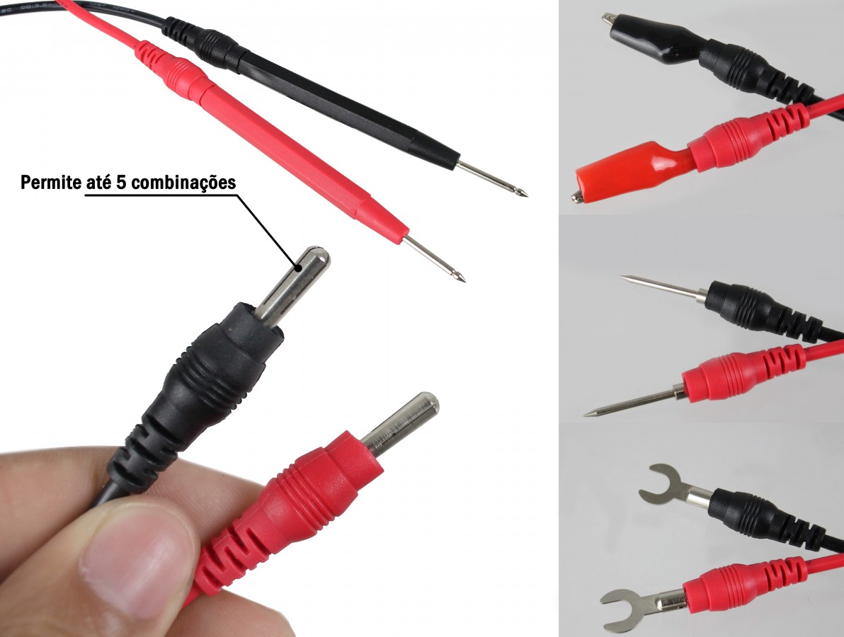 - Conectores: banana 4mm / forquilha / garra jacaré / extra fina longa / extra fina;