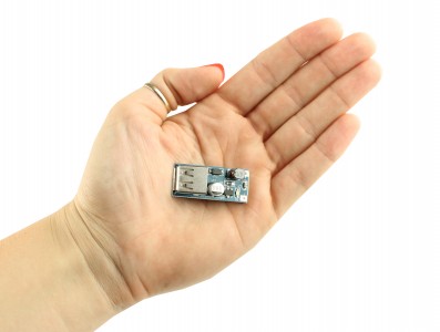 Ele trabalha com tensões de entrada de 2V a 5V, oferecendo em sua porta USB fêmea tensão regulada de ~5V, permitindo a conexão do Arduino ou de um smartphone, por exemplo.