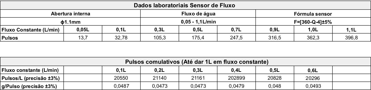 Dados Sensor Fluxo de água SEN-HZ06D