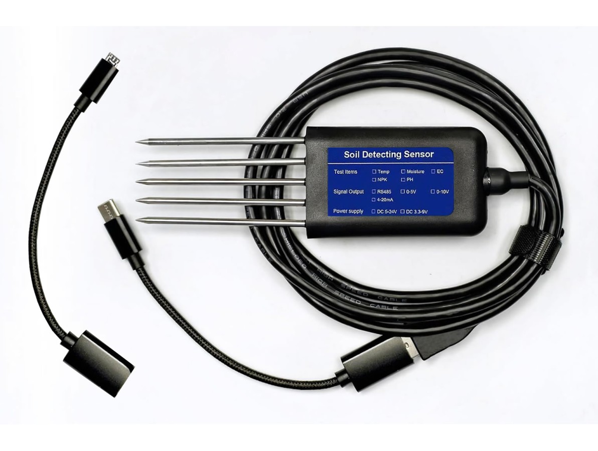 O Sensor de Solo 8 em 1 NPK, pH, Condutividade e Umidade com Interface USB-C é um dispositivo de análise portátil e de alta precisão desenvolvido para monitorar as principais condições do solo em tempo real.