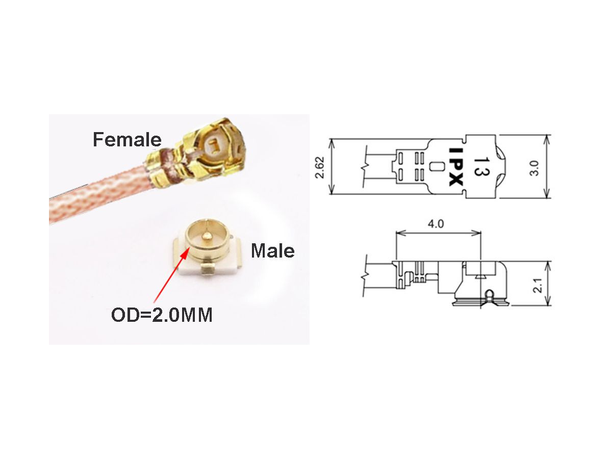 - Conector IPX1 (IPEX1/UFL1) 2mm;